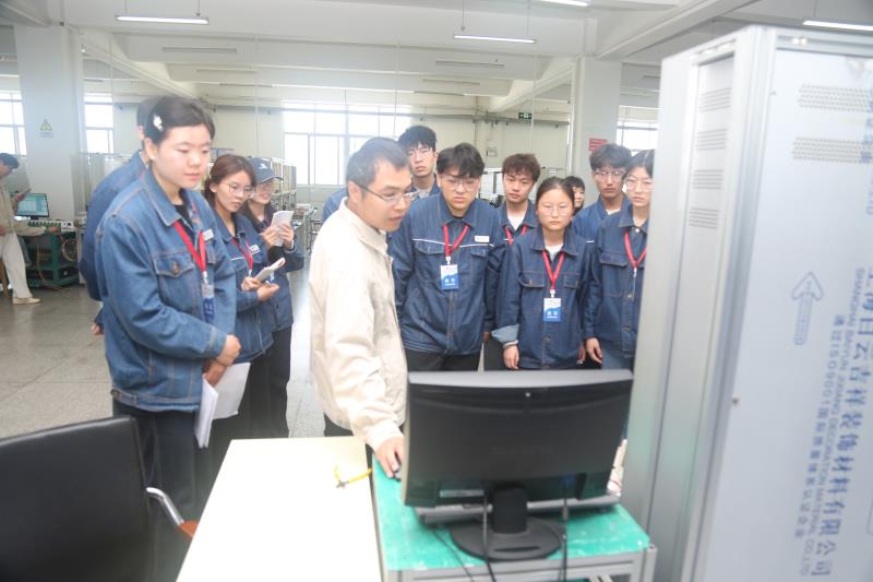 随后,专家组走进生产研发车间,实地察看学生实训环境。企业导师侯威现场向郑州电专学生讲解实习项目设置、标准操作流程与关键技术要点,展示真实岗位实操场景与规范要求,让专家直观感受“做中学、学中做”的实训模式落地成效。