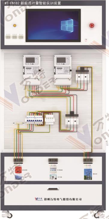 装置模拟光伏组件经逆变器将直流电能逆变为交流电能再并入电网的运行模式。装置支持余电上网、全额上网两种并网计量方式,可实现不同运行方式下产权分界点、用户并网点和用户负荷侧不同计量点计量设备的选择、安装、接线和通电调试实训、考核;装置具备在规定运行方式下表计选择、电缆线径选择、安装接线正确性的自动判定及接线工艺规范化判定功能;装置具备计量回路电气量的动态仿真、计量设备数据仿真功能。